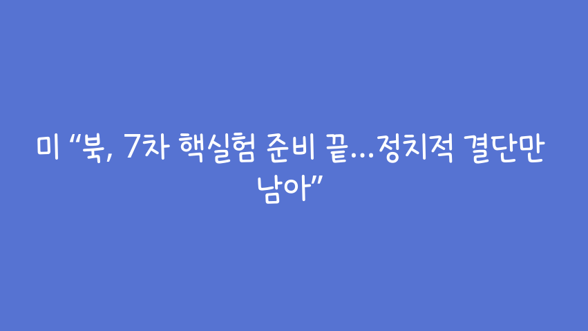 북 7차 핵실험 임박, 미국 경고```html7차 핵실험 임박? 북한의 정치적 결단만 남았다미국 국무부는 북한이 7차 핵실험을 위한 준비를 완료했으며, 이제 정치적 결단만 남았다고 밝혔습니다. 알렉산드라 벨 미 국무부 부차관보는 풍계리 핵실험장 준비 완료 사실을 언급하며 북한의 핵실험 가능성을 강하게 시사했습니다. 이와 함께 북한의 ICBM 시험 발사 등을 언급하며 북한의 탄도미사일 프로그램 지속 의지를 강조했습니다.한미 동맹 강화의 필요성 강조미국은 북한의 무모하고 불안정한 행동을 우려하며, 핵 사용 가능성까지 포함한 북한의 잠재적 공격에 대비하기 위해 한미 동맹의 더욱 강력한 발전이 필요하다고 강조했습니다. 벨 부차관보는 한국에 대한 미국의 확고한 방위 공약을 재확인하며, 북한의 핵 공격 시 신..