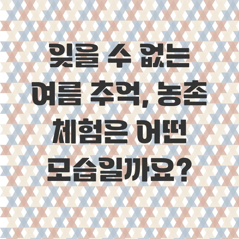 안녕하세요! 찌는 듯한 여름, 어디론가 훌쩍 떠나고 싶은 마음 간절하시죠? 도시의 삶에 지쳐 잠시 숨 고르고 싶다면, 자연의 품으로 떠나는 농촌 체험 어떠세요? 잊고 지냈던 순수한 감동을 되찾을 기회, 지금 바로 시작해 볼까요?도시 탈출! 힐링과 추억을 선사하는 농촌 체험의 매력 잊을 수 없는 여름 추억, 농촌 체험은 어떤 모습일까요?자연과 하나 되는 순수한 즐거움삭막한 콘크리트 숲을 벗어나 푸른 들판과 맑은 공기를 마시는 상상만으로도 짜릿하지 않나요? 봉조마을의 모내기 체험, 상큼한 과일 따기 체험은 단순한 농촌 일손 돕기가 아닌, 자연과 교감하는 소..