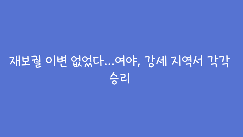 재보궐 선거, 예상대로 여야 승리 재보궐선거, 여야 '텃밭' 지켜어제 치러진 재·보궐선거에서 여야는 각자의 강세 지역을 지켰습니다. 국민의힘은 부산과 인천에서 승리했고, 민주당은 전남 영광과 곡성에서 승리했습니다.부산과 인천, 국민의힘 승리보수 강세 지역으로 분류되는 부산 금정구청장 선거에서는 국민의힘 윤일현 후보가 당선되었습니다. 윤 후보는 민주당 김경지 후보를 20%p 이상의 차이로 이겼습니다. 인천 강화군수 보궐선거에서도 국민의힘 박용철 후보가 민주당 한연희 후보를 누르고 승리했습니다.호남, 민주당 굳히기민주당은 '당의 심장'으로 불리는 호남에서 모두 승리했습니다. 영광군수 선거에서는 민주당 장세일 후보가 득표율 41%로 당선되었습니다. 곡성군수 선거에서는 민주당 조상래 후보가 조국혁신당 박웅두 후..