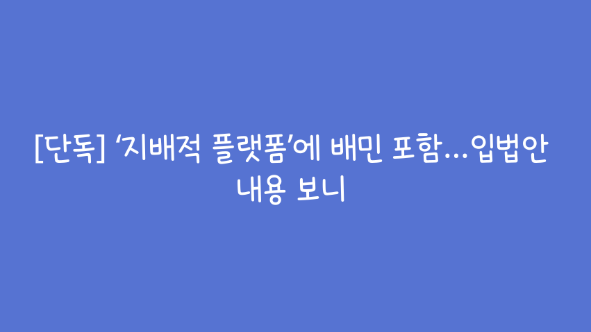 배달앱, 지배적 플랫폼 지정 거대 플랫폼 규제, 배달의 민족 포함되나? 공정거래위원회가 거대 플랫폼의 독과점 문제 해결을 위해 지난달 규제 방안을 내놓았지만, 실효성 논란이 있었습니다. 특히 배달의 민족 등 주요 플랫폼들이 규제 대상에서 빠지는 것 아니냐는 비판이 제기되었죠. 하지만 여당이 배달의 민족을 포함하는 법안을 추진 중인 것으로 KBS 취재 결과 확인되었습니다. 공정위 규제 기준, 배달의 민족은 제외? 공정위는 지난달 초, 시장 질서를 흐리는 거대 플랫폼에 대해 제재 수위를 높이겠다고 발표했습니다. '반칙행위'를 하다 적발되면, 관련 매출액의 8%까지 과징금을 물리기로 했죠. 또 시장점유율 60%, 이용자 천만 명, 매출액 4조 원 이상이면 '지배적 플랫폼'으로 추정하기로 했습니다...