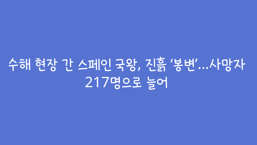 스페인 국왕, 수해 현장서 진흙 봉변…사망자 217명 스페인 홍수, 국왕에 진흙 세례... 정부 늑장 대응에 분노 폭발 최근 스페인 동부 발렌시아 지방은 기습적인 폭우로 큰 피해를 입었습니다. 200명이 넘는 사망자가 발생했고, 실종자 수색 작업이 한창입니다. 특히, 펠리페 6세 스페인 국왕과 페드로 산체스 총리가 수해 현장을 방문했을 때, 분노한 시민들이 진흙과 물건을 던지는 사건이 발생했습니다. 시민들은 정부의 늑장 대응에 분노하며 욕설을 퍼부었습니다. "살인자!"... 국왕, 시민들의 분노에 직면 시민들은 정부가 폭우 경고를 제대로 전달하지 않아 피해가 커졌다고 주장했습니다. 실제로 폭우가 내린 지난달 29일, 폭우 적색 경보가 발령된 지 10시간이 지나서야 지역 주민들에게 긴급 재난 안전 문자가 ..