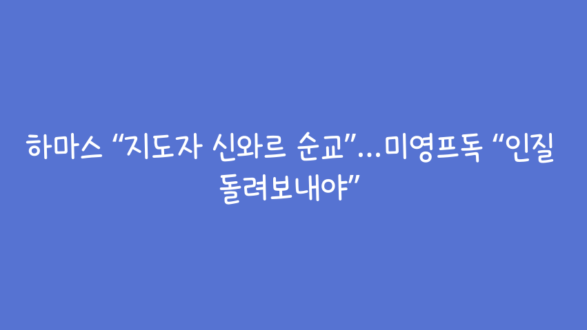 하마스 지도자 사망, 인질 석방 촉구 이스라엘, 하마스 최고지도자 사살...전쟁 종식 가능성은?이스라엘이 팔레스타인 무장 정파 하마스의 최고지도자 야히야 신와르를 사살했다고 밝혔습니다. 하마스는 이를 공식 확인하며, 신와르가 이스라엘과의 전투에서 "순교"했다고 밝혔습니다. 이 소식은 전쟁 종식에 대한 기대감을 불러일으키고 있지만, 하마스는 인질 석방을 위한 휴전과 포로 교환 협상 없이는 인질을 풀어주지 않을 것이라고 강조했습니다. 미국, 하마스 지도자 사망을 "정의의 순간"으로 규정미국은 신와르의 사망을 "정의의 순간"으로 규정하며 가자 지구가 더 나은 미래를 모색할 기회를 갖게 됐다고 밝혔습니다. 바이든 미국 대통령은 네타냐후 이스라엘 총리에게 이번 사건을 평화로 가는 길, 하마스 없는 가자의 더 나은..
